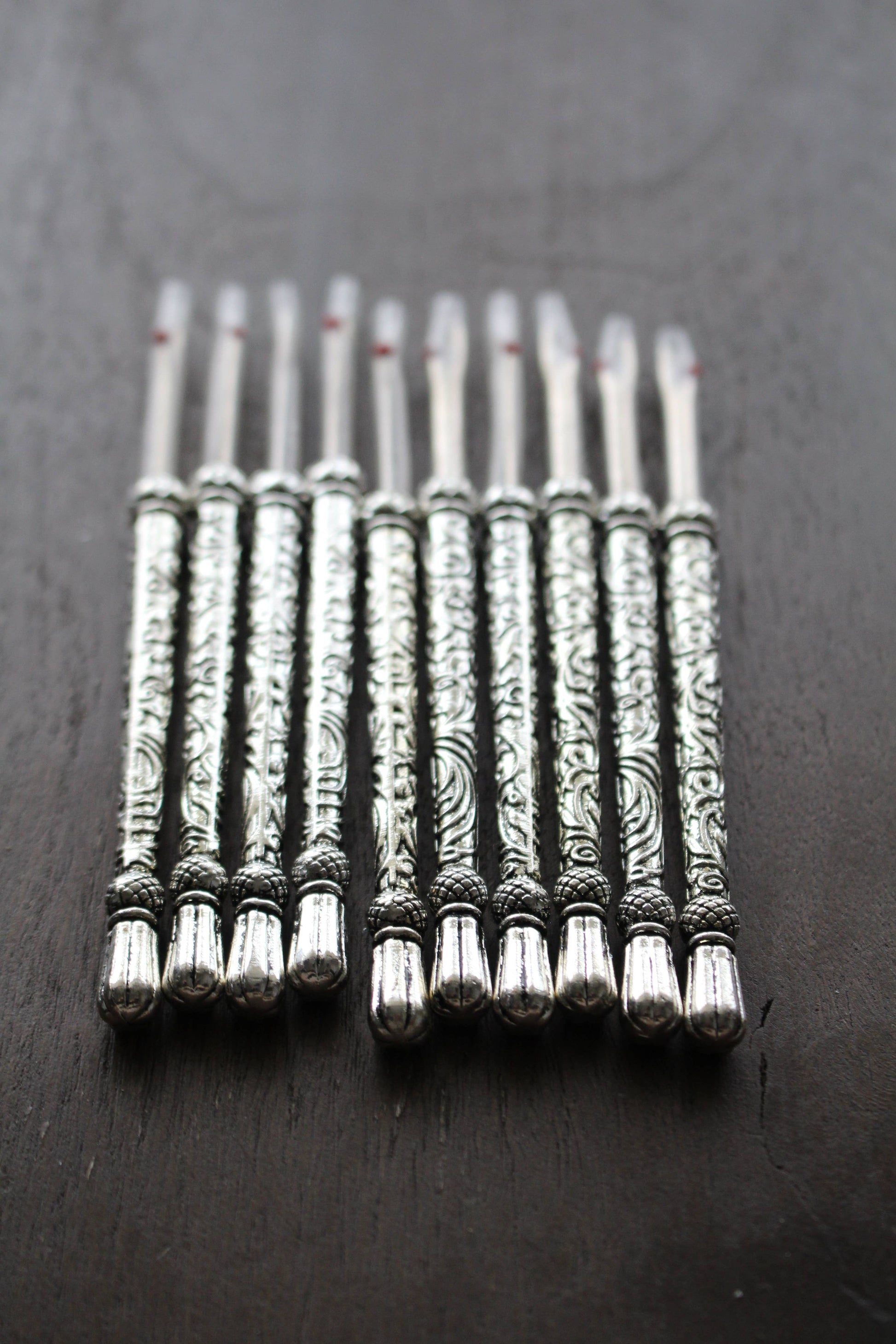 This vintage-style seam ripper in Antique Silver is both beautiful and practical—a perfect tool for anyone who loves to sew, quilt, or embroider. The finely engraved metal alloy handle has a warm, antique finish that gives it a timeless, elegant look. The sharp stainless steel blade makes it easy to remove seams, threads, and buttonholes, while the small ball tip helps protect delicate fabrics. A clear plastic safety cap is included for safe storage and travel.
