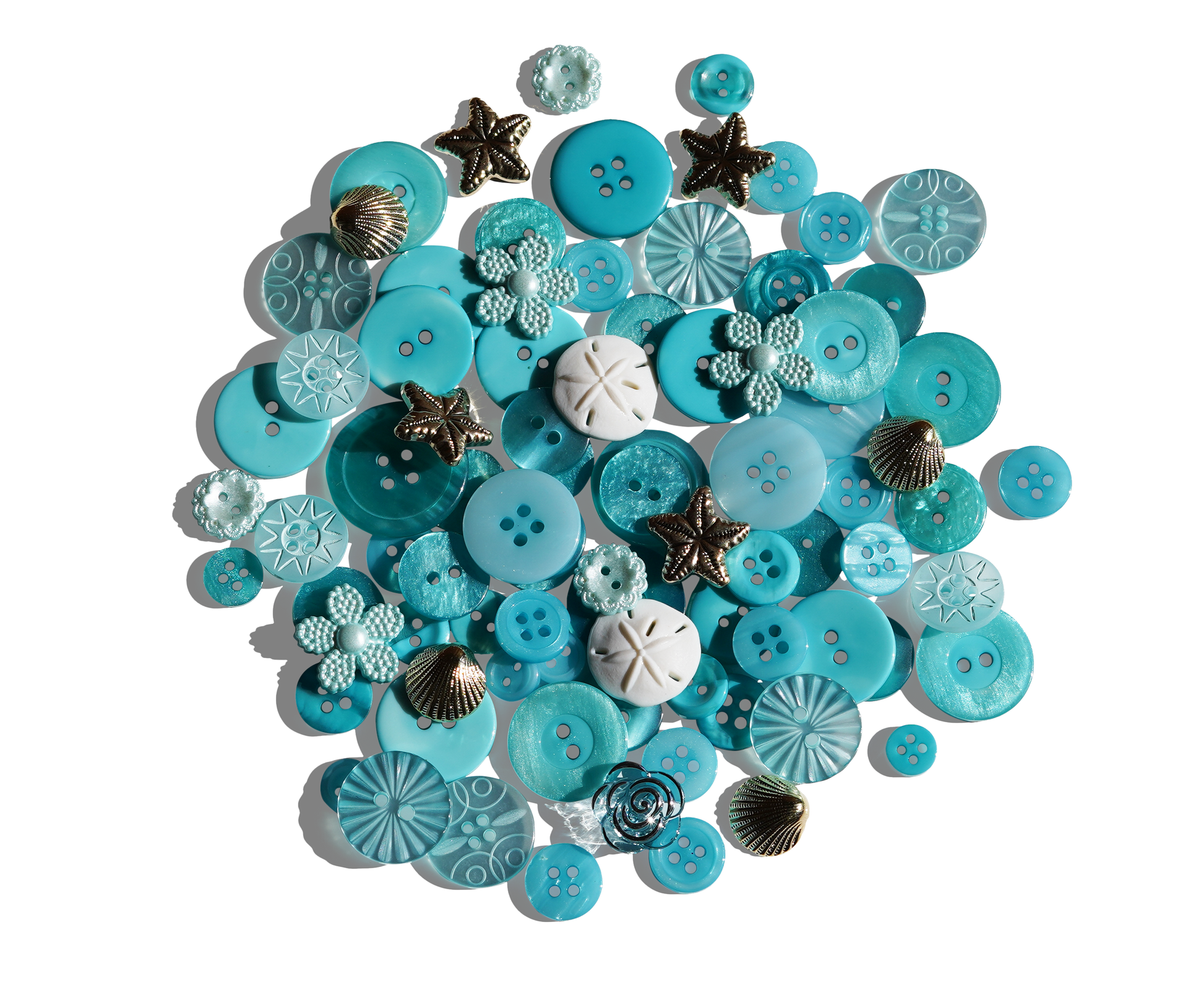 Bring the beauty of the ocean to your sewing and craft projects with the Low Tide Treasure Box, featuring approximately 100 pearlized designer buttons in assorted shades of blue. This curated set also includes starfish and seashell novelty buttons, making it perfect for adding a coastal-inspired touch to your creations. The reusable flower-shaped storage box keeps your buttons organized and easily accessible.